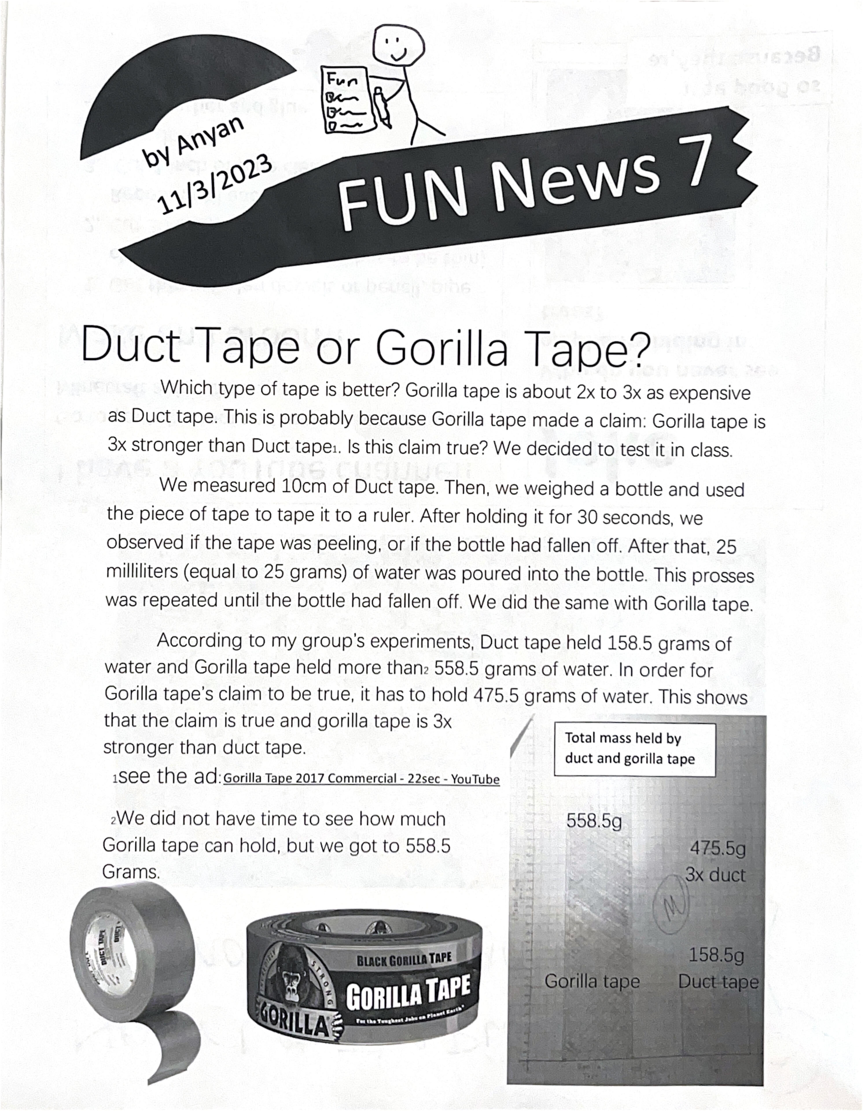 Fun News 7, made in 2023, featuring the results of a lab experiment. This is page 1.