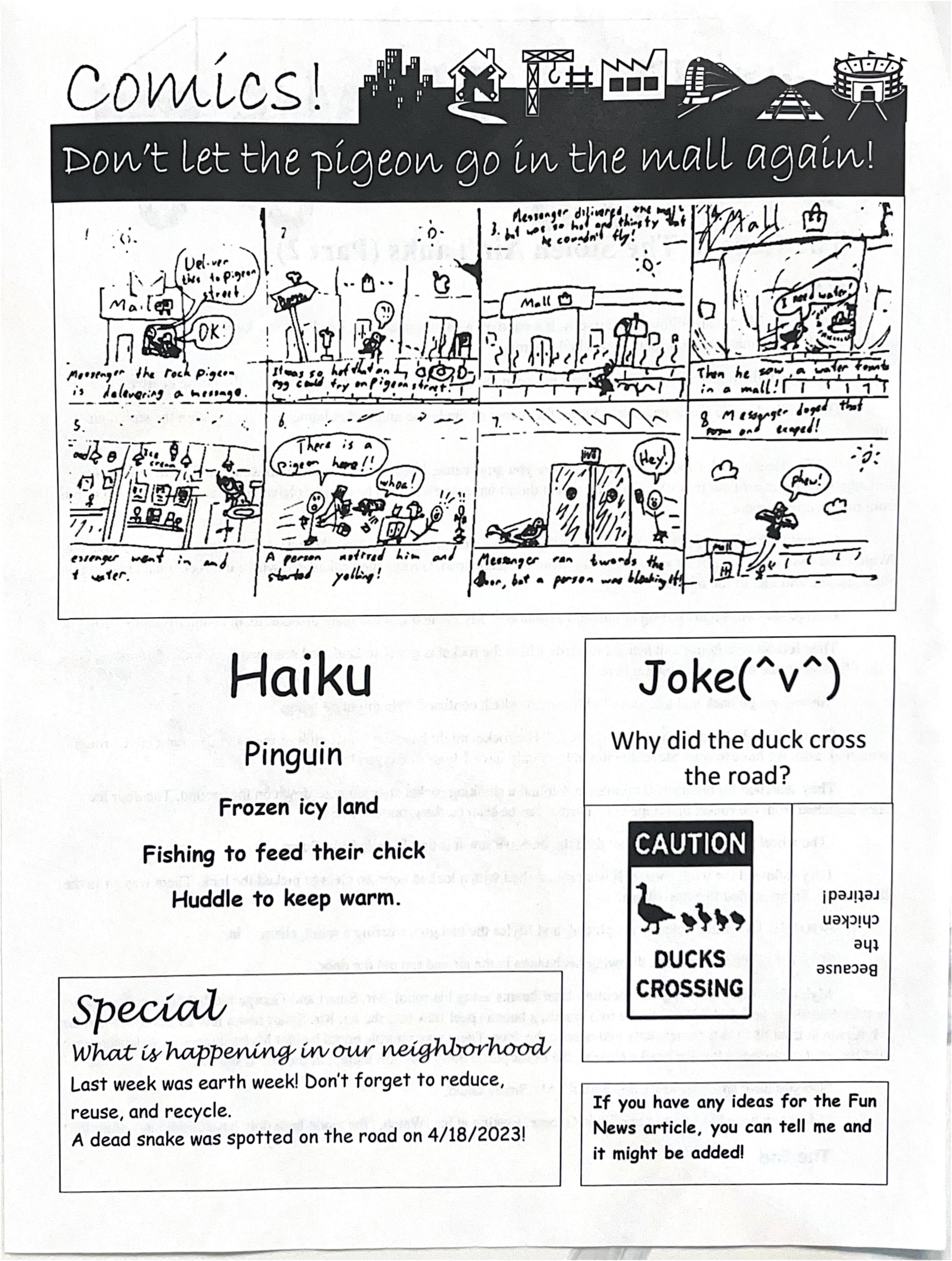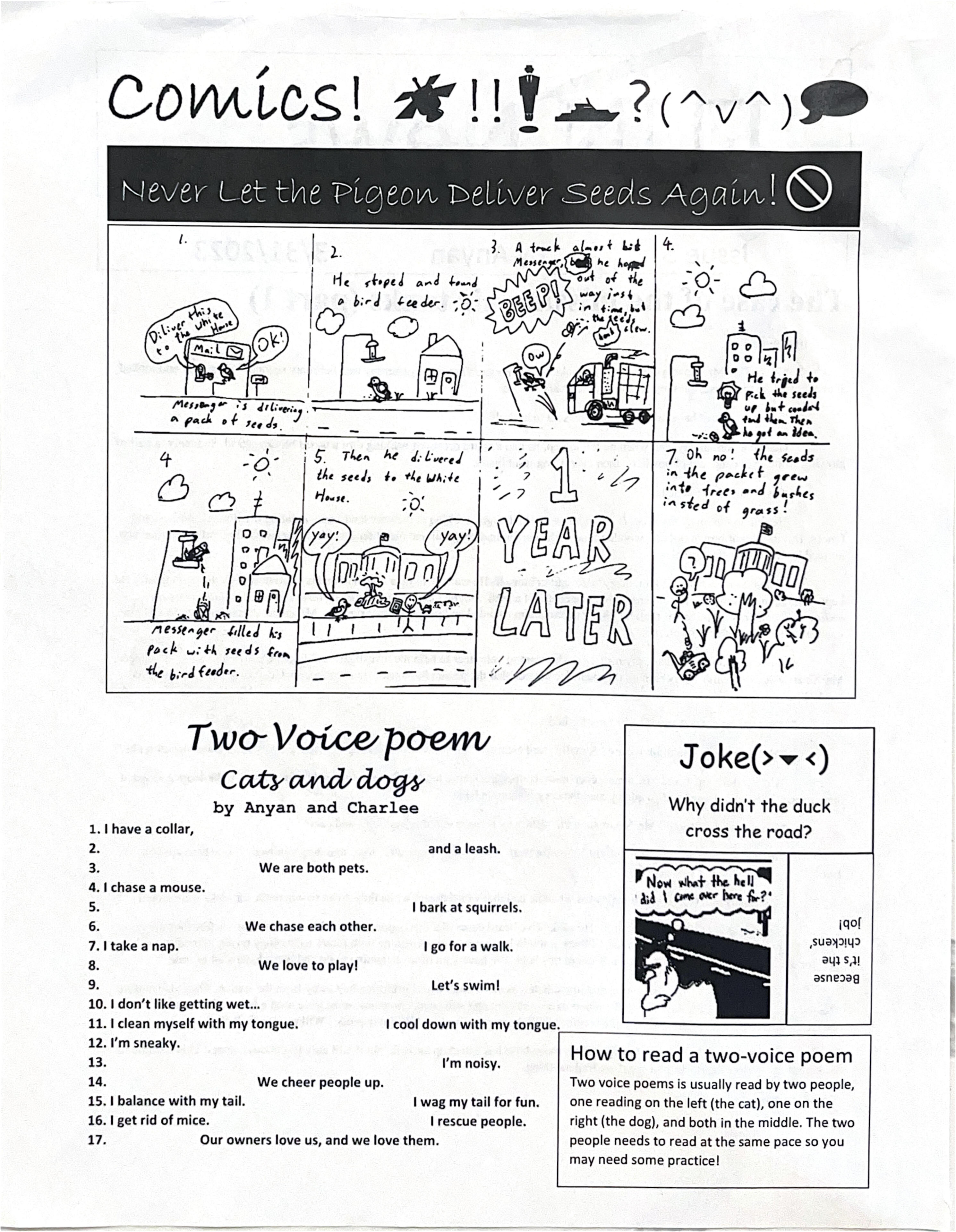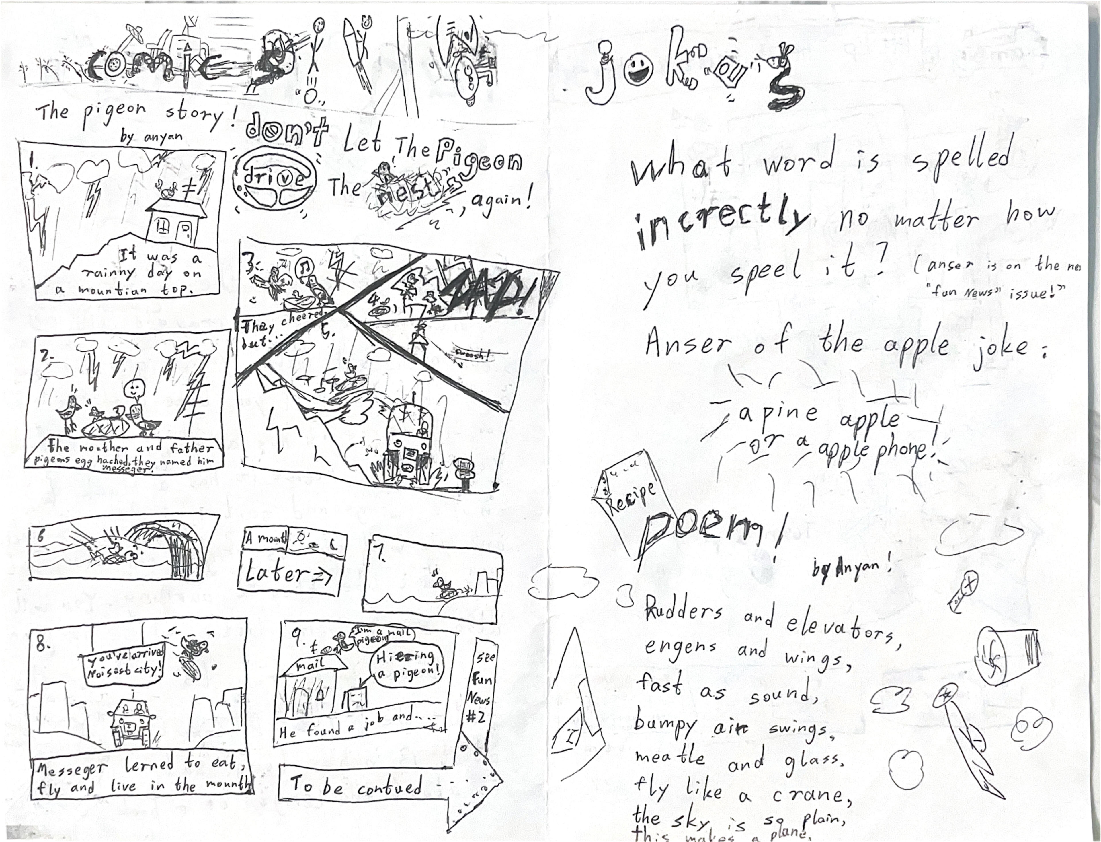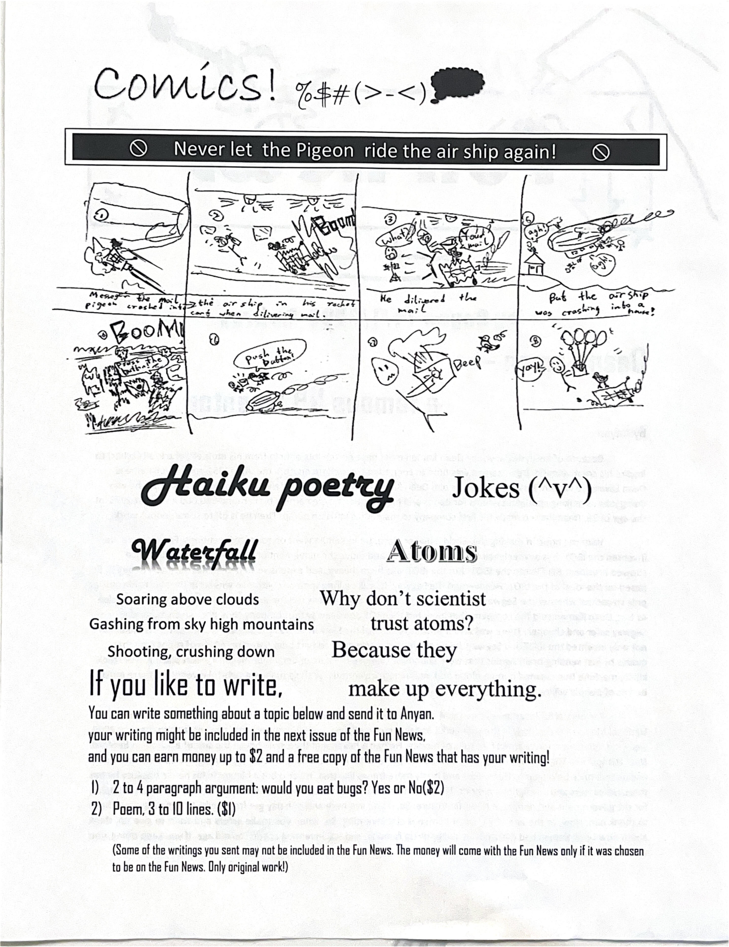Page 2 of Fun News. The backside included jokes, poems from school, and a series of comics intended to bring a smile to anyone.